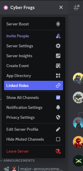 3. Come back into discord, go to server settings and click on "linked roles".